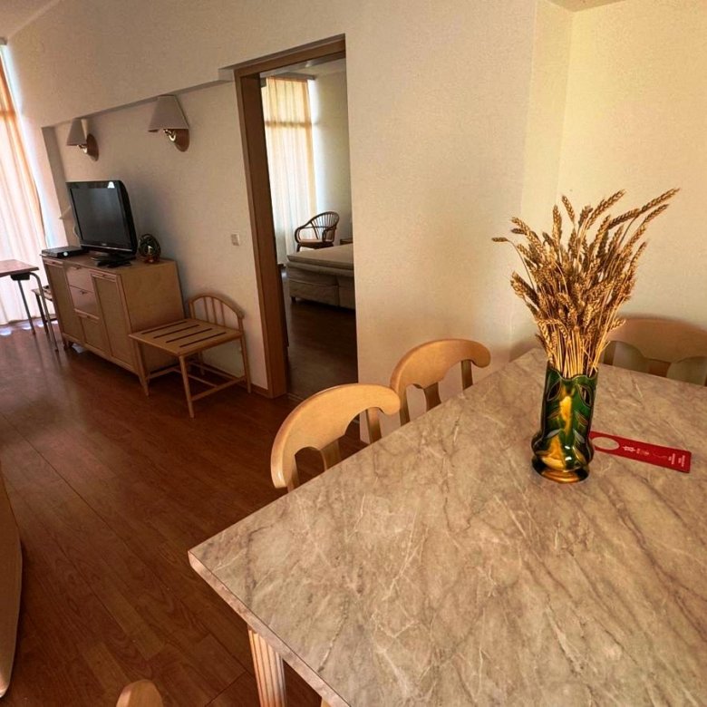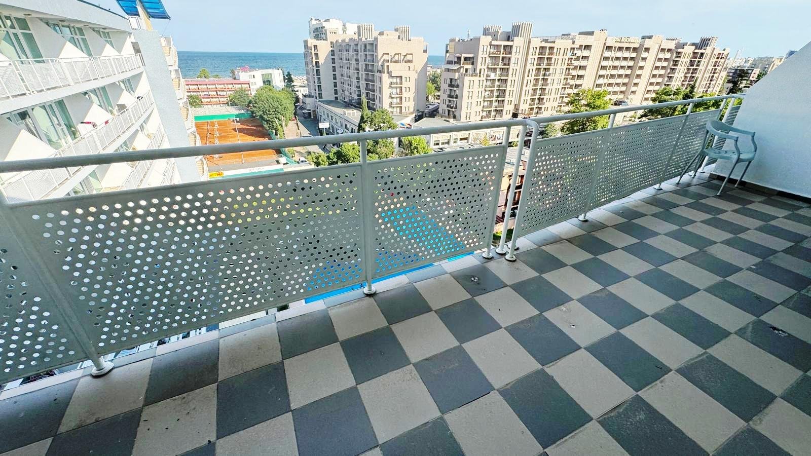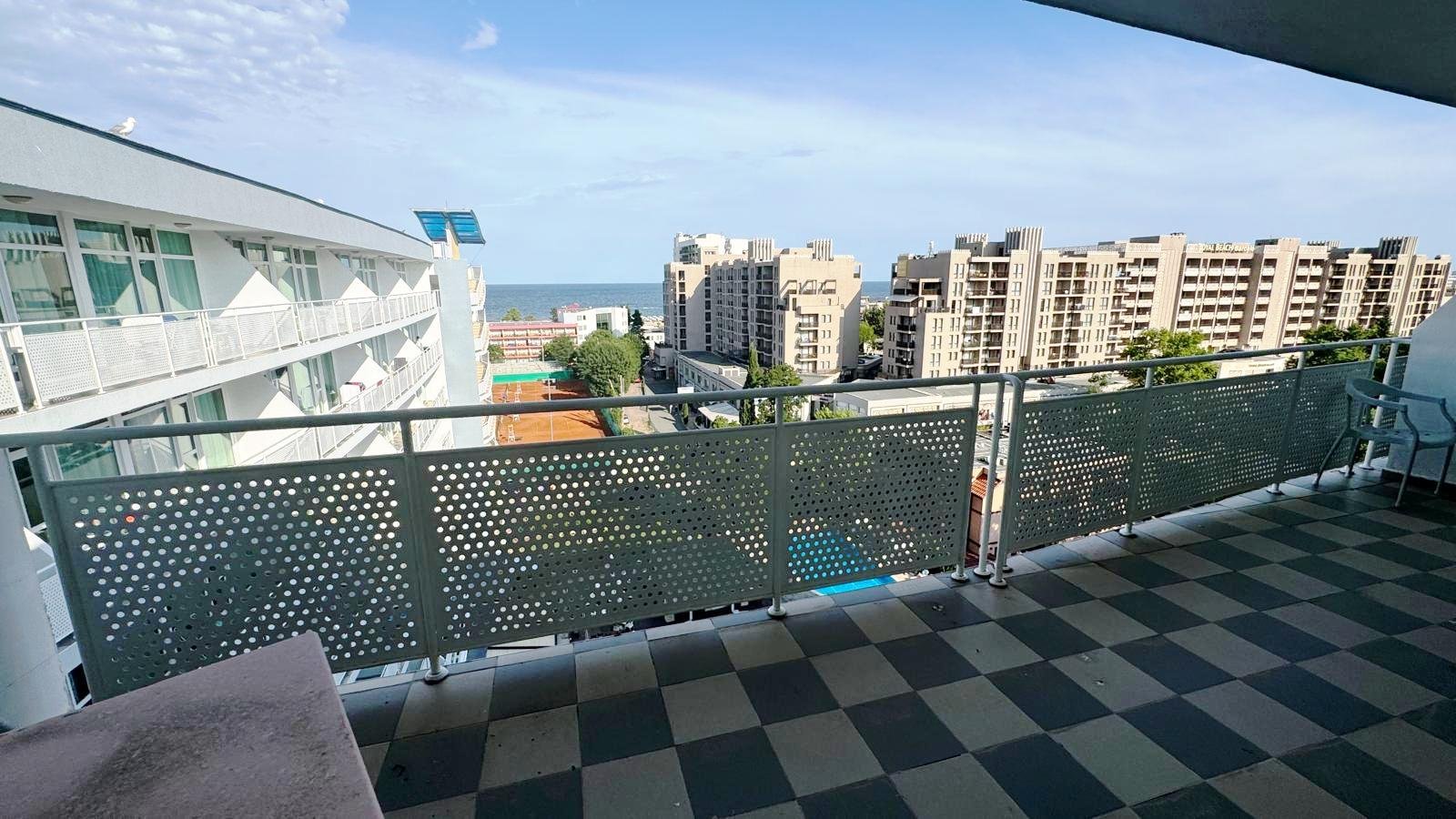 This spacious one-bedroom apartment is located on the 7th floor of the well-known Grand Hotel Nirvana in Sunny Beach. With a total area of 102.96 m², the apartment offers comfort, practicality, and generous natural light thanks to its elevated position.