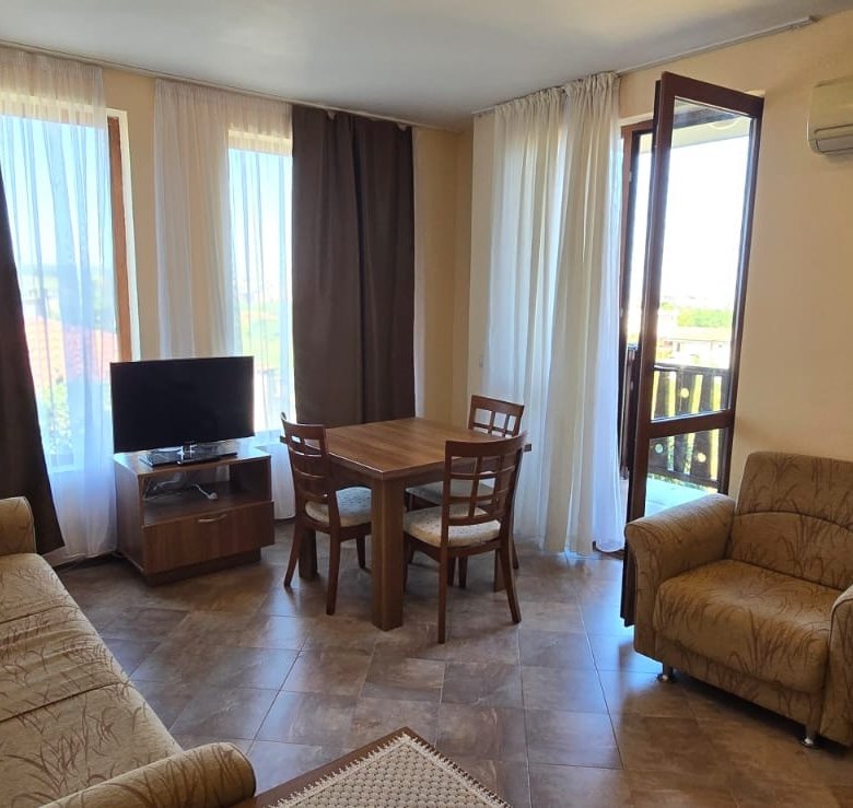 Located in the quiet and scenic Sozopol Bay View complex, this fully furnished one-bedroom apartment on the 2nd floor offers a relaxing atmosphere and direct sea views. The total area of 55.4 m² is well-utilized, providing comfort for both vacation use and long-term stays.