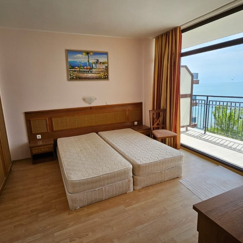 We are pleased to offer for sale a spacious one-bedroom apartment with a frontal sea view, located in the prestigious Tiva del Mar complex (also known as Caesar Palace) in Sveti Vlas.