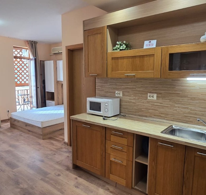 We present a well-appointed apartment located in the prestigious Garden of Eden complex in Sveti Vlas, just steps away from the beach.